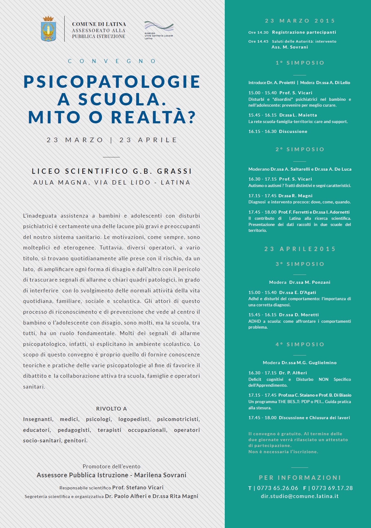 Latina, convegno sulle psicopatologie a scuola