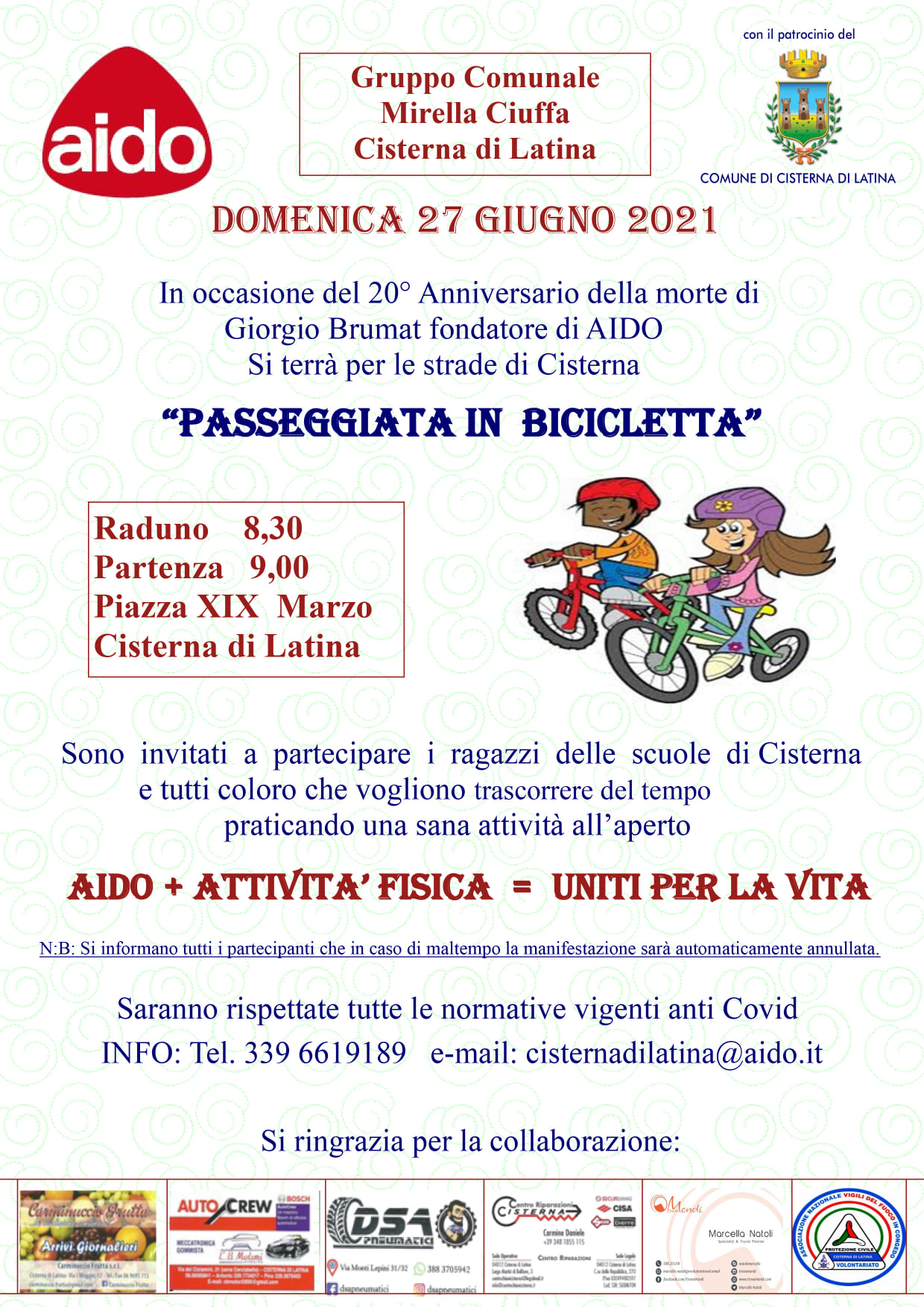 CISTERNA DI LATINA, Domenica in bici con l’AIDO per celebrare i 20 anni dalla scomparsa del fondatore Giorgio Brumat