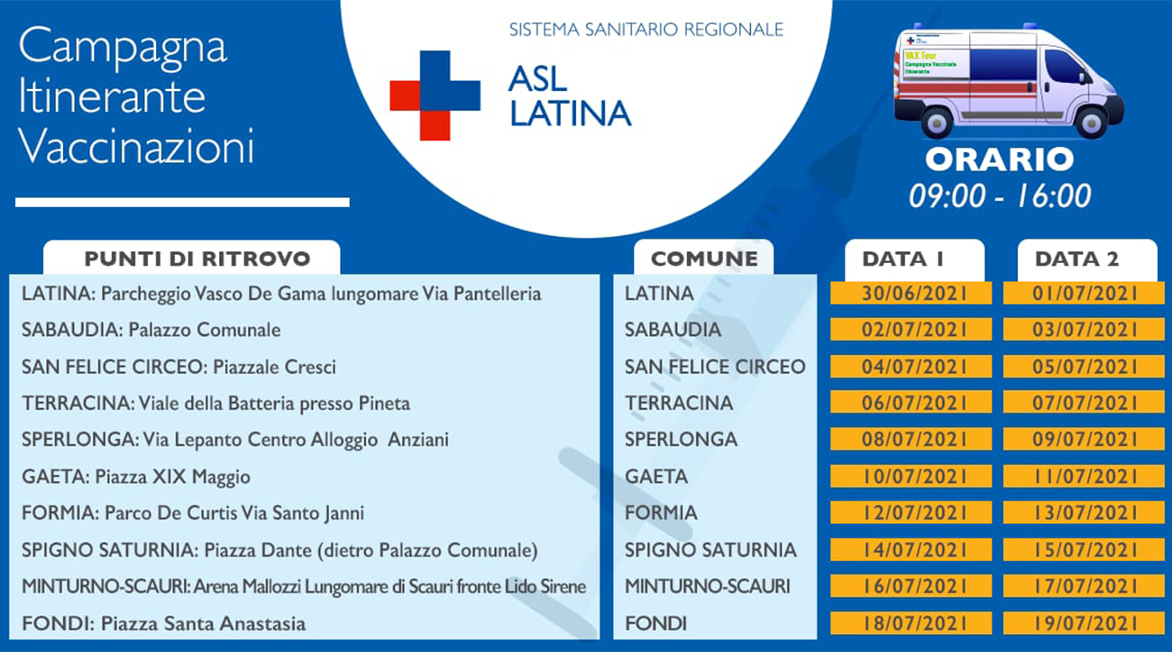 FONDI, campagna vaccinale itinerante: il camper della Asl fa tappa in Piazza Sant’Anastasia