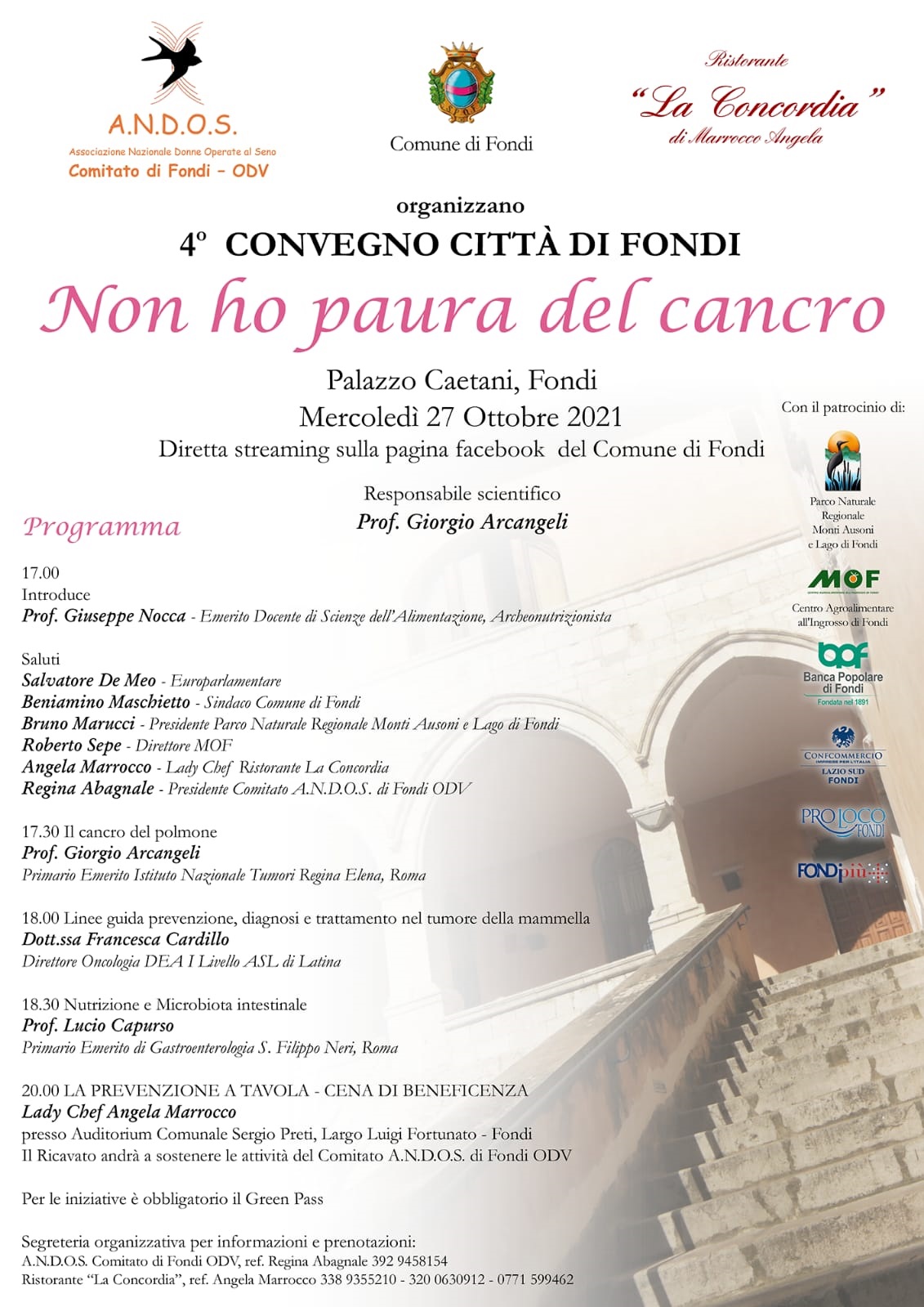FONDI, oggi a Palazzo Caetani il quarto convegno “Non ho paura del cancro”