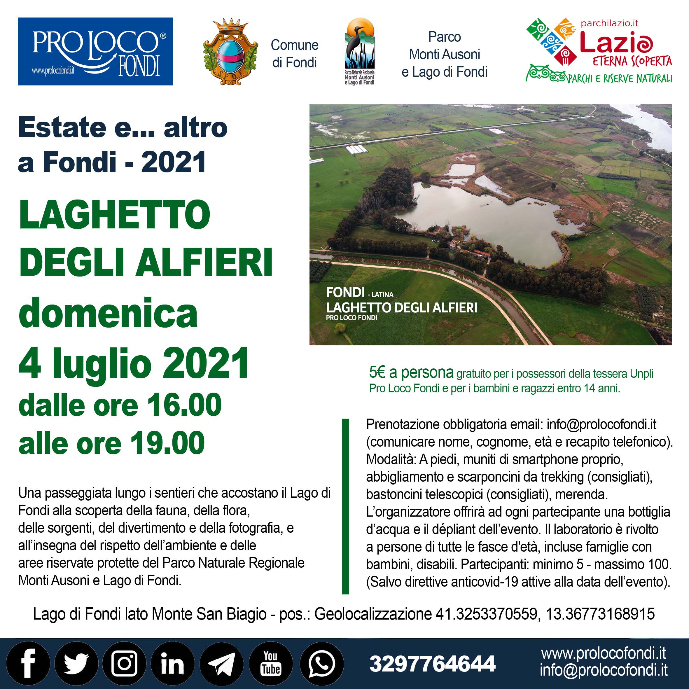 FONDI, domenica 4 luglio escursione e visita al Laghetto degli Alfieri
