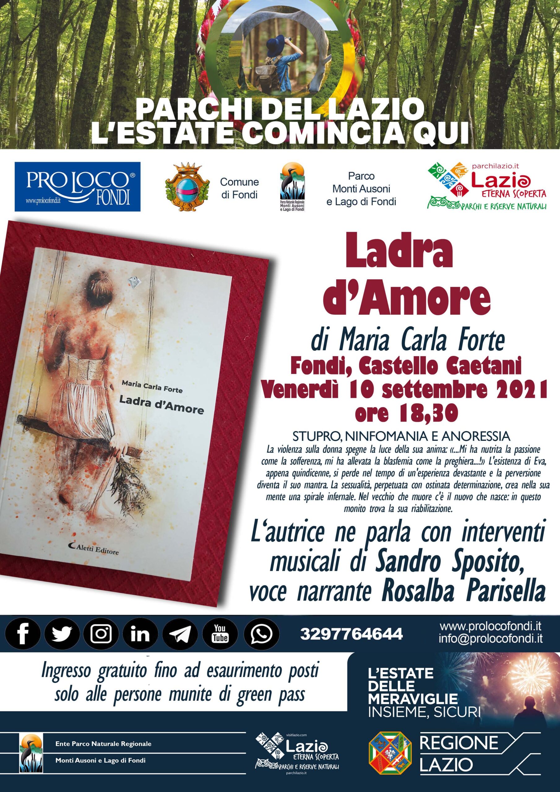 FONDI, si terrà venerdì nel Castello Caetani la presentazione di “Ladra d’Amore”, il romanzo di Maria Carla Forte