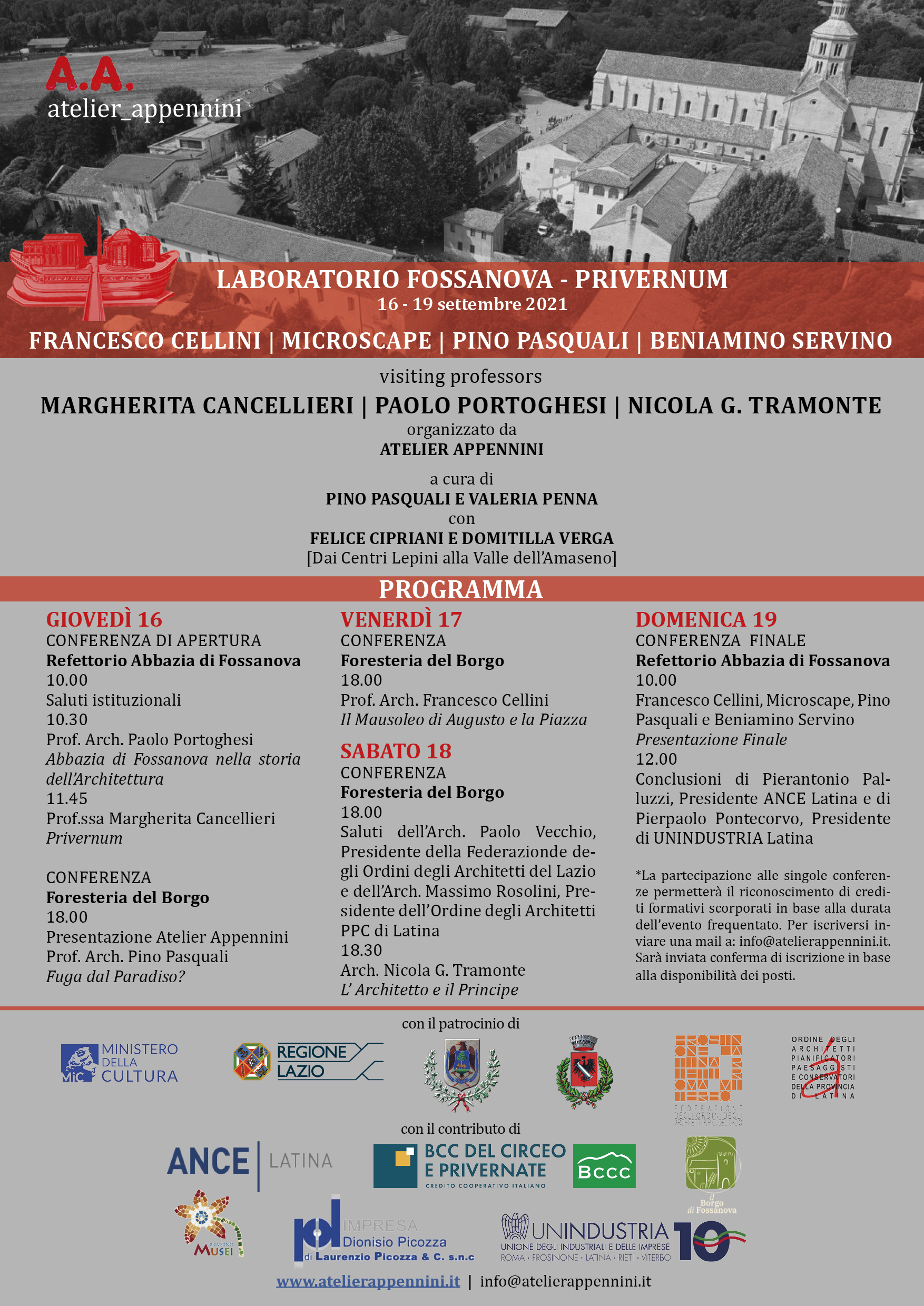 PRIVERNO, l’associazione culturale Atelier Appennini il “Laboratorio Fossanova-Privernum”, che si svolgerà dal 16 al 19 settembre